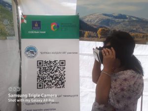 “СОЁЛЫН ОРОН ЗАЙ” арга хэмжээнд Бурхан Халдун уул, түүнийг хүрээлсэн тахилгат газар нутгийн хамгаалалтын захиргаанаас “Бурхан Халдун Виртуал/VR үзвэрийг ирсэн зочид төлөөлөгч, үзэгчдэд танилцуулж байна.